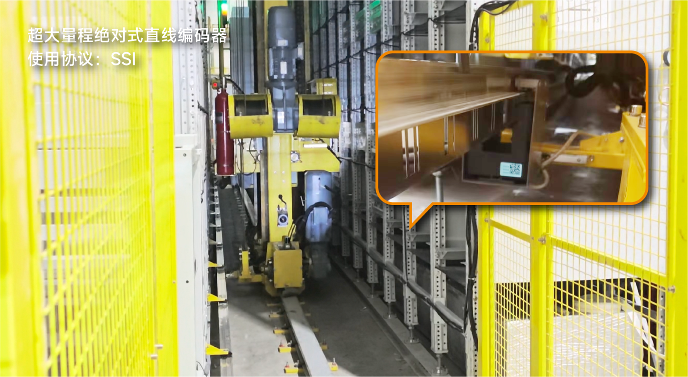通过高速、高响应的位置检测,保障智能仓储行业高速堆垛机、四向穿梭车,秒级精准存取与高速往复运动,大幅提升仓储物流的周转效率。同时背胶粘贴式码带部署快捷,无机械磨损,解决传统编码器在超长、多岔道场景下的安装与维护难题,大幅降低大型物流中心后期维护成本。